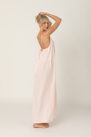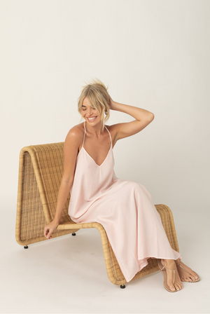 This dress embodies comfort and elegance.This column shaped maxi dress is effortlessly chic and can be worn multiple ways. With a flattering v-shaped neckline and adjustable straps, the Milky Way Maxi gives a new meaning to simple, yet classic style. She is available in our light pink colour-way.